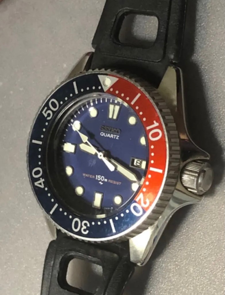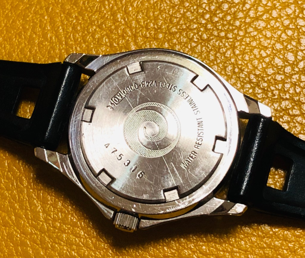そして、回転式ぺゼルは当時「ダイバーズウォッチ」という名称で「水深100m防水」仕様が80年代の流行だったそうです。ビンゴ。