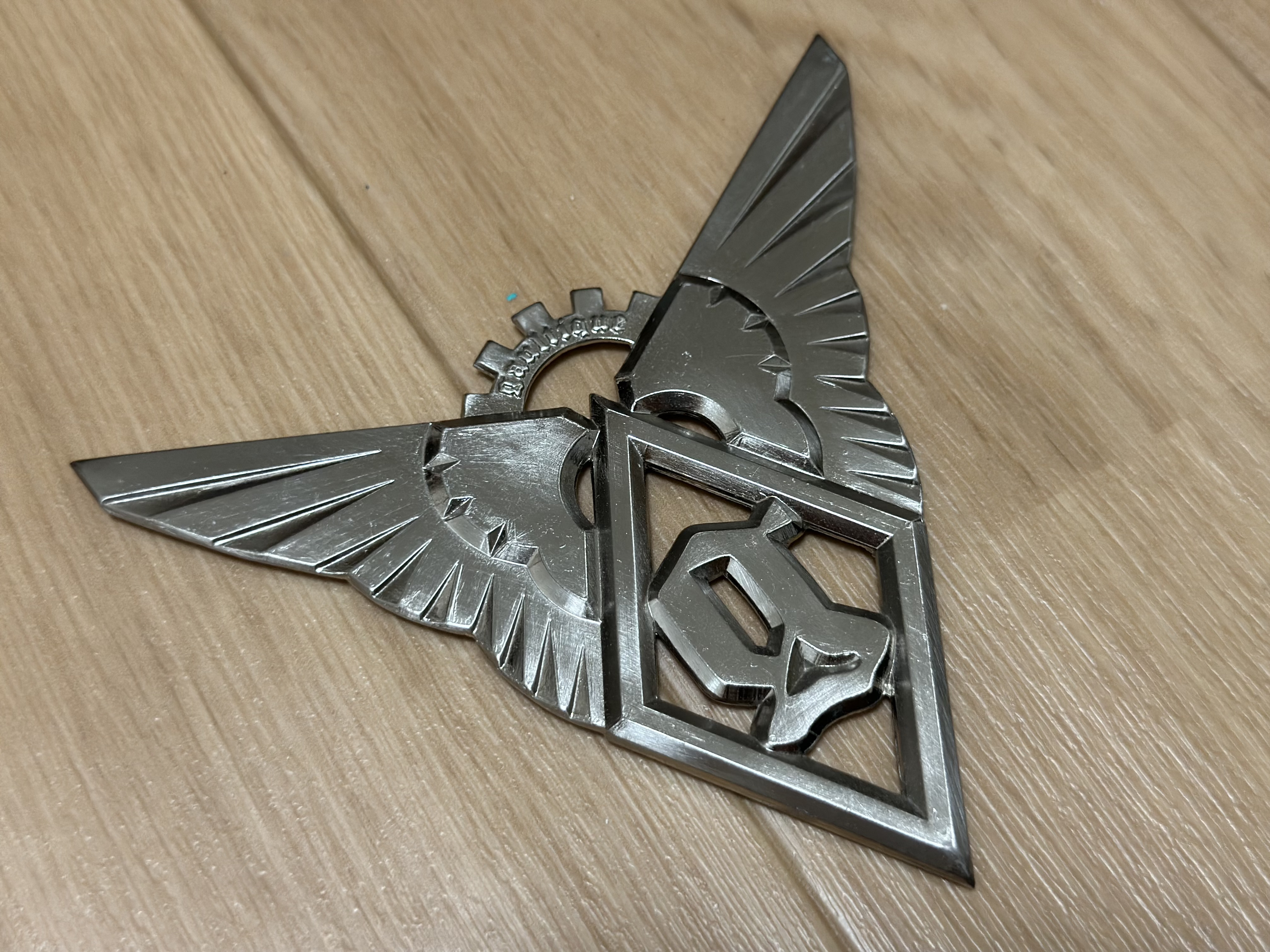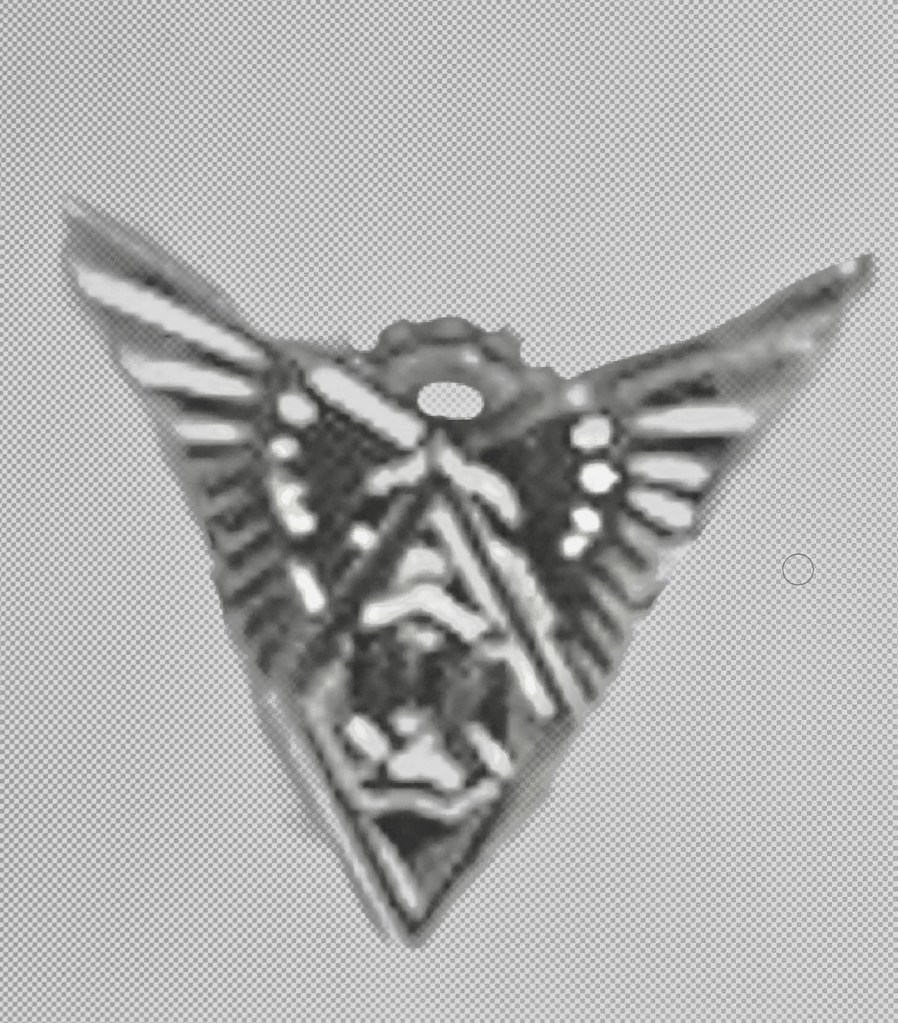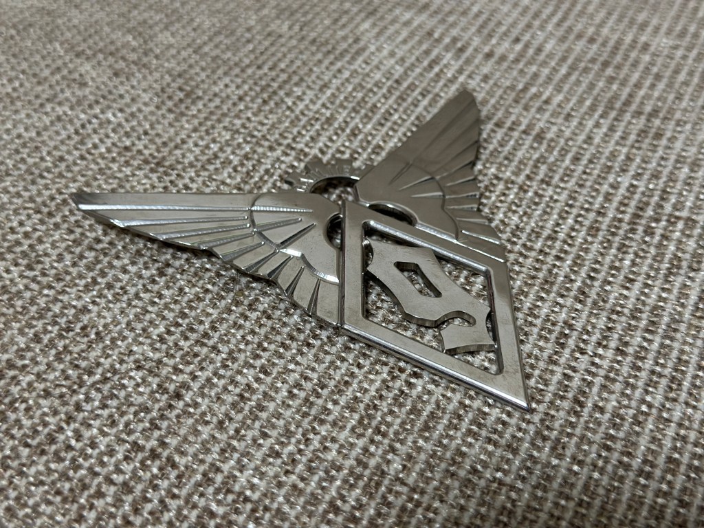 一見すると、ヴィンテージのミリタリーバッジに見えますね。翼にひし形、何かアルファベットが中央にある?